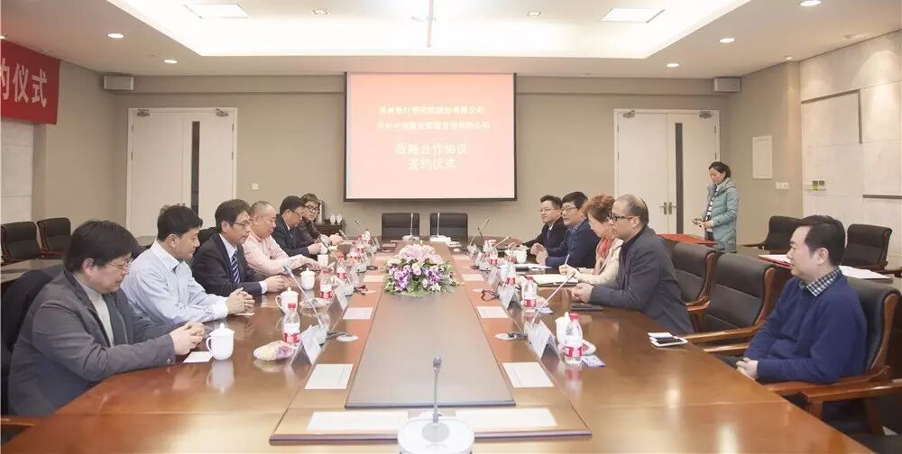 苏州设计总经理查金荣、苏州中润总经理杨家明、苏州设计副总经理仇志斌在会上发表讲话,均对双方此次的合作充满信心,并希望进一步加快下一阶段工作的开展。随后,我司董事长戴雅萍与苏州中润副董事长章俭正式签署战略合作协议。
