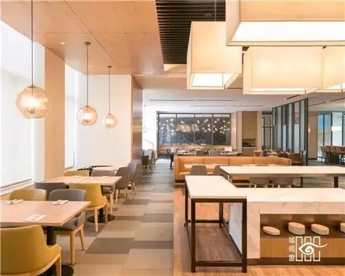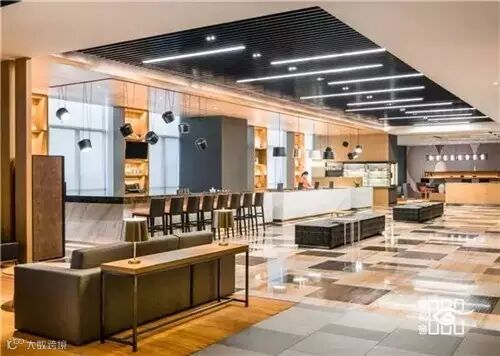 ▲整体开放式的大堂空间与餐厅、休闲吧和会议前厅之间都是通透流动的。石、木、金属、玻璃……它们生动的讲述自己的故事,沉静与活泼相映,力量与轻盈相依。