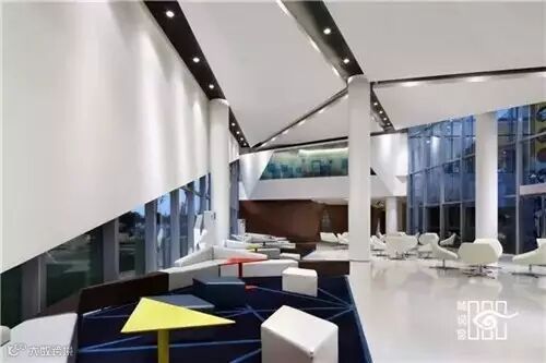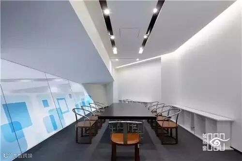 ▲一个会议室模拟着切割完成的宝石,悬挑于另一端,似乎预示着旅程的终点就是菱形格凝成的一颗无暇美钻。