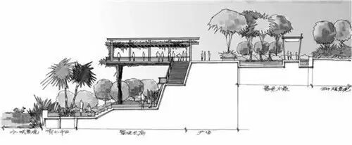 ▲设计师创造性地运用抽象手法,从地道的文化中引申出“折线”与“水波”形式作为场地造型的基调,创造生态的退台空间,编制新的城市体验载体,形成一个水城交融的城市舞台,实现城市魅力的尽情展现。打造一个有序列层次的空间体验界面,使生态滨水形象得以形成。