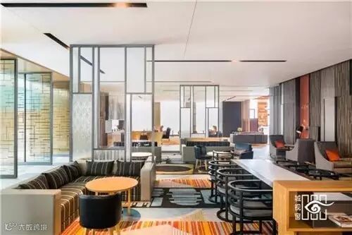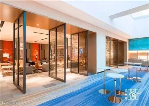 ▲可移动的水纹玻璃屏风设置在各通道之间,为商旅多元化的需求时刻匹配灵活的安排。会议前厅打开玻璃门摇身一变,即与休闲区融为一体。除了看得见的部分,我们认为更重要的在于看不见的层次关系,这其中蕴含着严密的逻辑。
