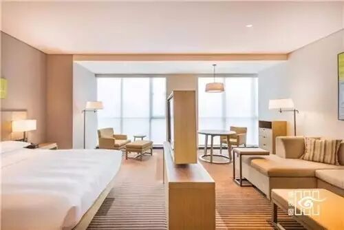 ▲设计师最初的设计灵感是以现代抽象的方式来提炼这个千年古都别具底蕴的城市印象。酒店的基调是厚重的深灰色和温暖的橙色。灰色是从洛阳经典的龙门石窟、层叠的塔檐屋瓦中汲取的意象,橙色则来自绚烂的唐三彩陶瓷艺术、十三朝帝都的君王气韵。设计师依此两种色彩延伸出一系列属性,并以简约的方案运用于不同的材质和家具。