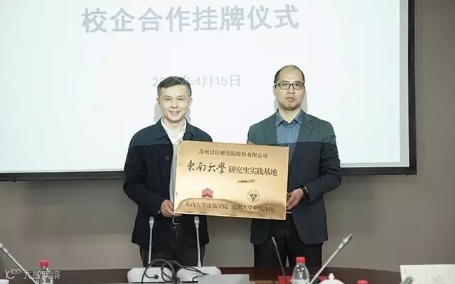 4月15日上午,东南大学建筑学院院长韩冬青、副院长张彤一行莅临苏州设计交流指导,并为“东南大学研究生实践基地”挂牌,我司总经理查金荣、副总经理靳建华等出席了挂牌仪式。会上双方就专硕人才的培养和引进、校企资源合作与共享等展开交流并达成共识。