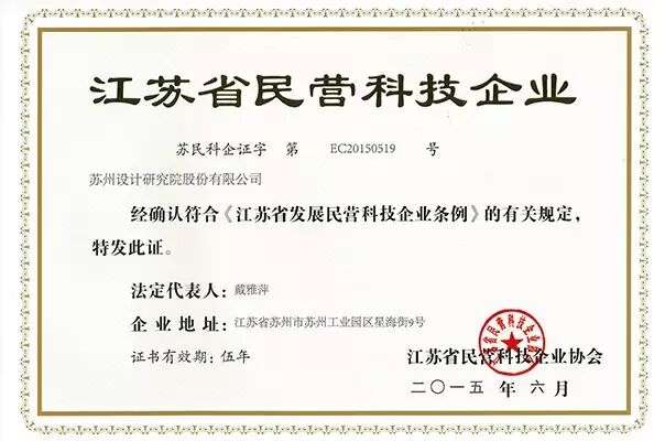近日,我司荣获“江苏省民营科技企业”称号,作为2015年第一批被认定为江苏省民营科技企业的企业之一,这是苏州设计在科技创新领域继高新技术企业、江苏省科技型中小企业之后获得的又一殊荣,也是对苏州设计长久以来在科技创新、人才培养方面不断探索和努力的肯定。