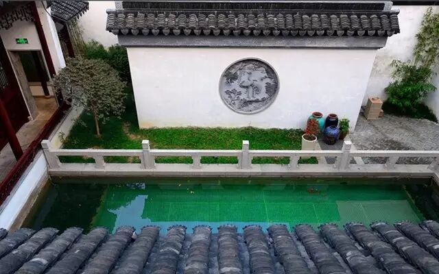 第二步:注入现代科技技术。现代化的民居宅院应该更符合人们对住宅舒适性和安全性的诉求。在潘祖荫故居的“再设计”中,我们结合故居花园和天井庭院的空地优势,集中设计和引入地源热泵空调系统。地源热泵的管路预埋在地下或进行巧妙隐藏,解决了室外机组对古建修复的影响。同传统空调系统比,这套系统一次性投入后即能解决后期酒店运营所需的空调、热水、地暖三方面功能,节能和舒适效果明显。