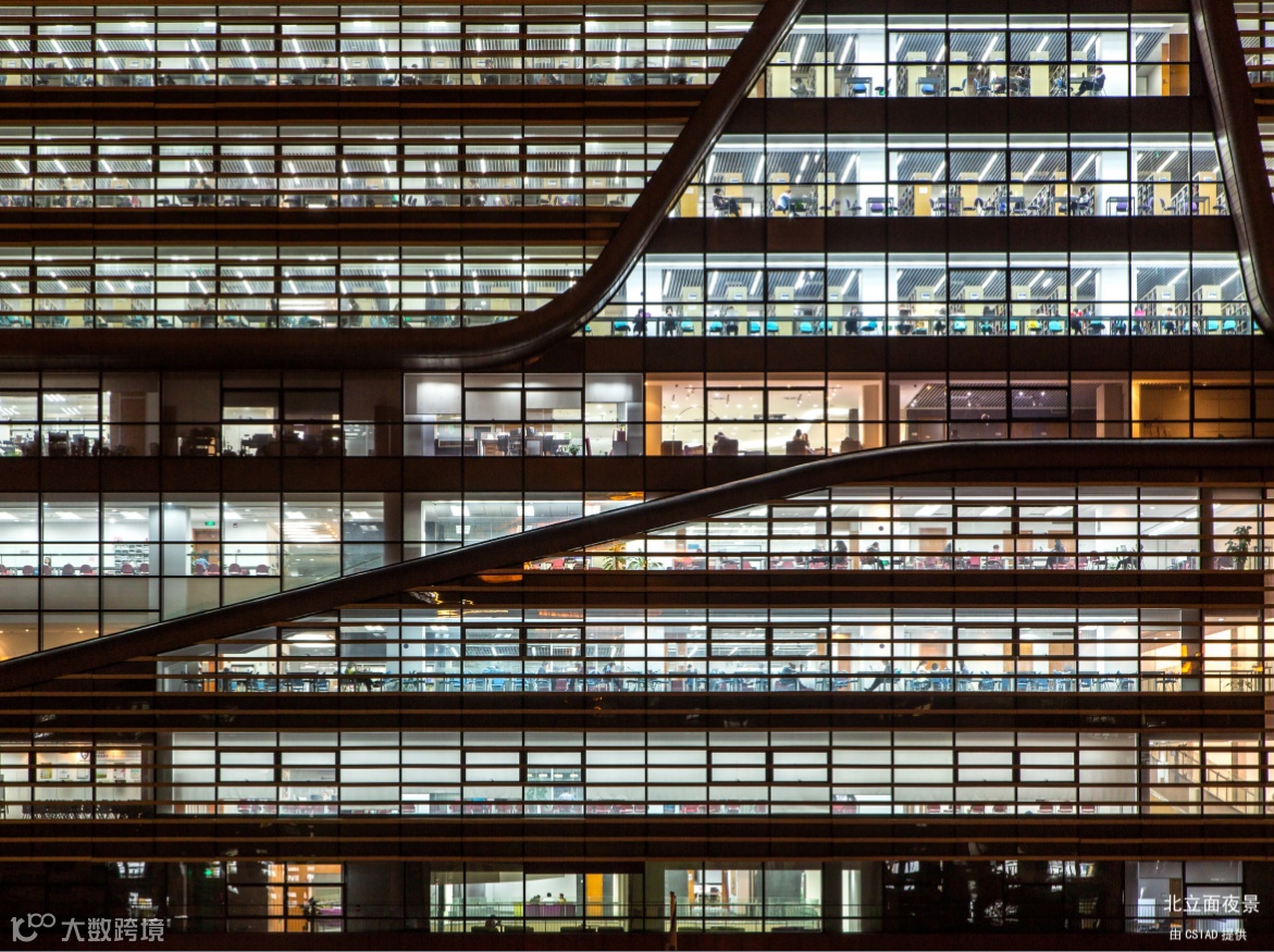 移动大楼与招商银行建同高,塔楼标准层达2000平米,建筑面积比招商银行大一倍,怎样处理如此悬殊的体量,关系到整个区域的格局。设计采用了弧形立面,成功地化解了巨大的体量感,使建筑倍显挺拔。