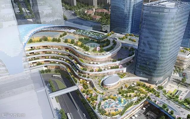 中心裙楼屋顶将通过层层退台的设计,建造屋顶步行系统,在建筑群间构建起环形的空中通道。在这里,你可以充分感受建筑形态与生态环境的完美融合。