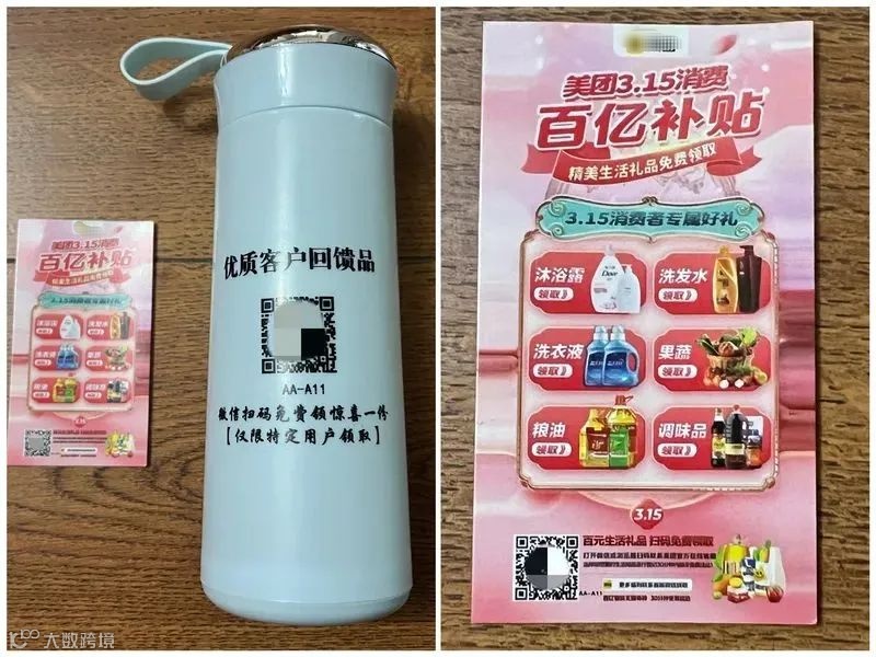 前段时间,有市民收到一个快递,收款人姓名、地址都准确。但网购记录中没有购买过该产品。拆开包裹,是一个塑料壳水杯以及一张声称来自某平台的“专属好礼”劵。杯子并附有二维码,声称“微信扫码免费领取惊喜一份。