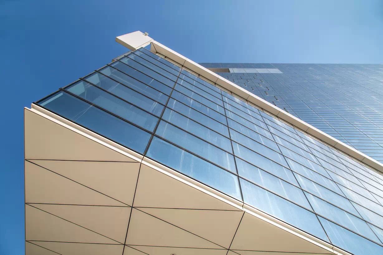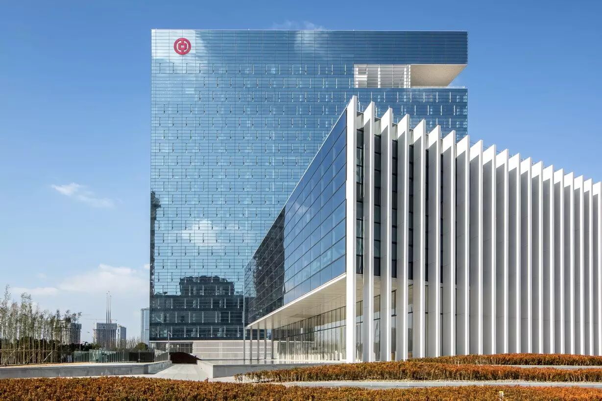 建筑整体轮廓保持简洁的形体,与众不同的形体清晰地表现了建筑的几何体框架,干净、明快而又端庄,彰显出中国银行应有的实力与尊贵。