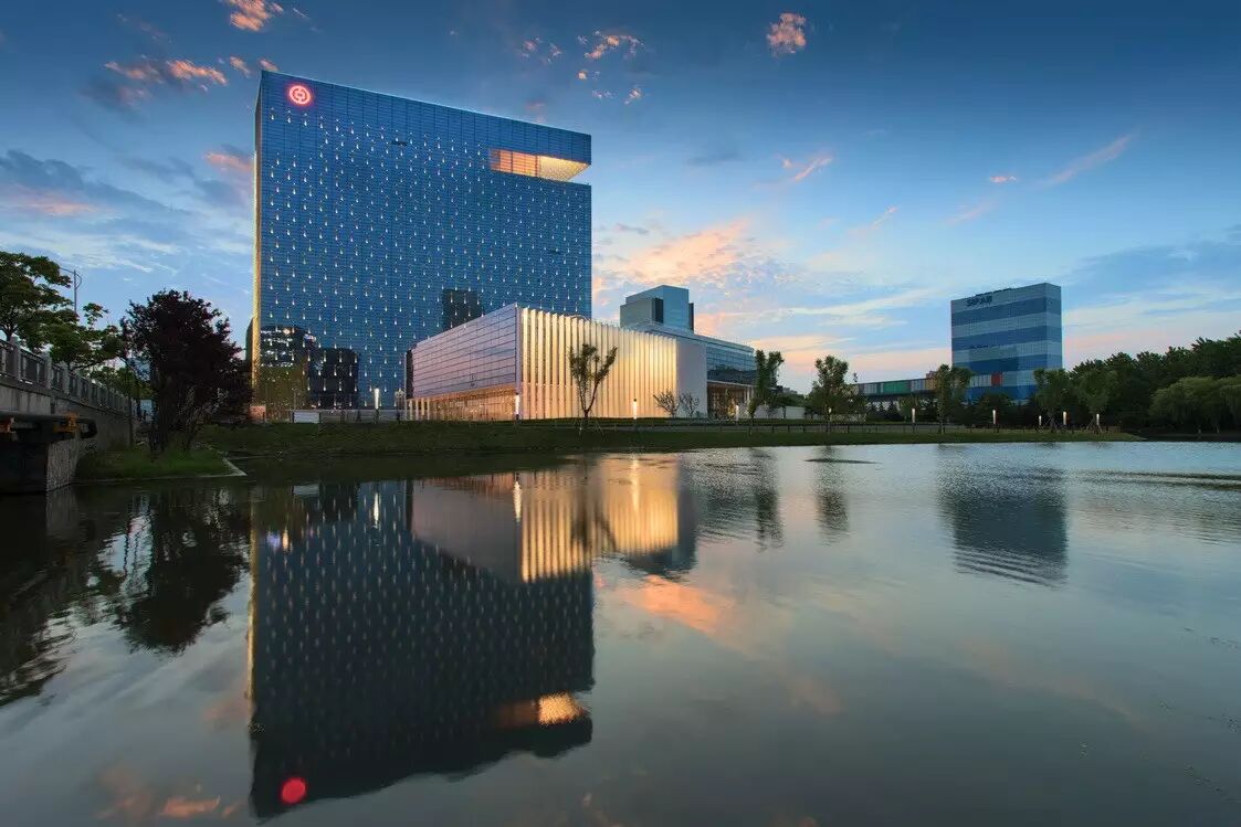 贝氏将苏州园林的技法运用到世界各地的建筑项目中,同时也不外乎于地处姑苏的中银大厦。传统的灰和白的主导色调被充分利用,装设性很强的石材铺地模式,建筑与江南水景的相互交融,苏式建筑的神韵被自然挥发出来。
