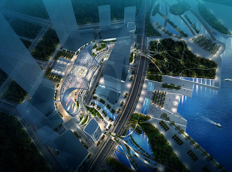 沿东北街向南,途经东环路至现代大道,从进入工业园区伊始,即能看到矗立于金鸡湖畔的东方之门,“门”下就是苏州中心广场,这里是湖西CBD的核心位置。苏州中心占地面积约16.7万平方米,总建筑面积约113万平方米,集购物中心、办公楼、服务型公寓、酒店、文化娱乐于一体,将被打造成兼具“包容性”与“生命力”的城市多功能综合有机体。