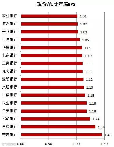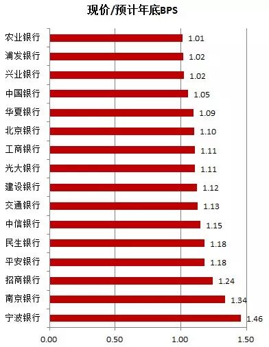 以银行股PB来看,现价与年末预期的BPS(来自WIND)对比,