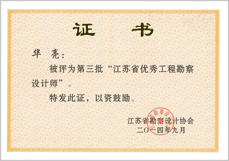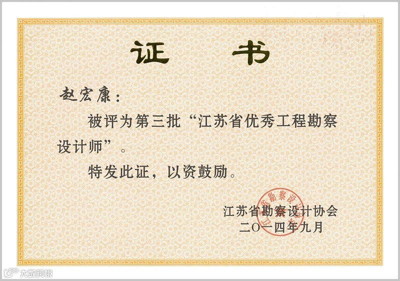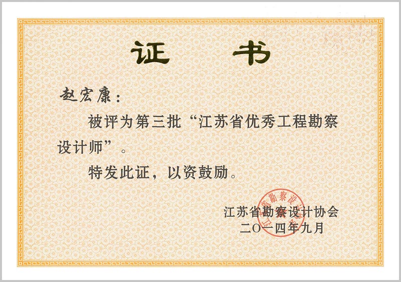 副总工程师赵宏康获江苏省优秀工程勘察设计师