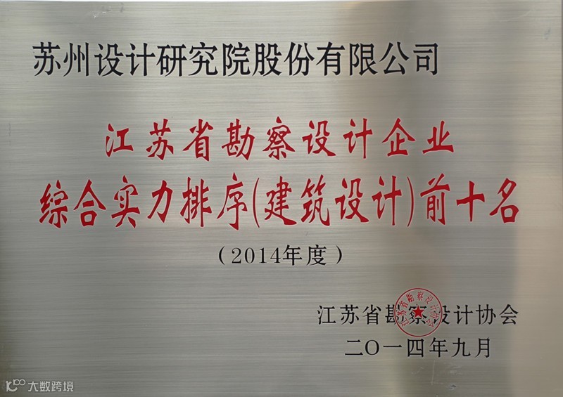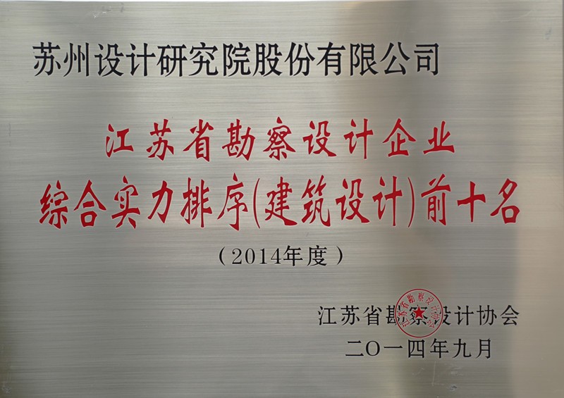 我司蝉联江苏省勘察设计企业综合实力排序(建筑设计)前十名