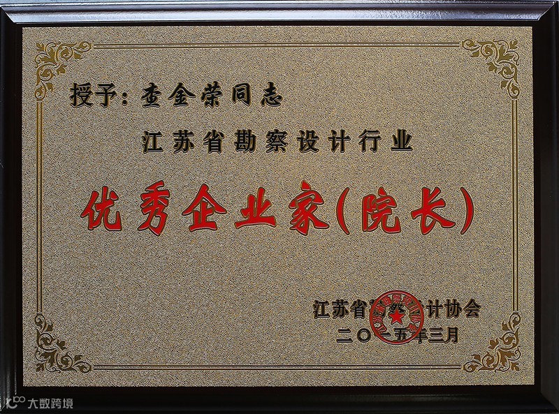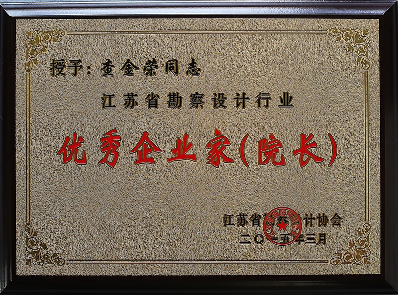 查金荣院长获江苏省勘察设计行业优秀企业家(院长)