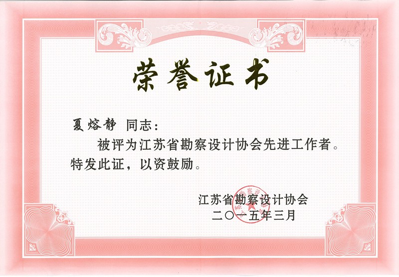 院长室助理夏熔静获江苏省勘察设计协会先进工作者