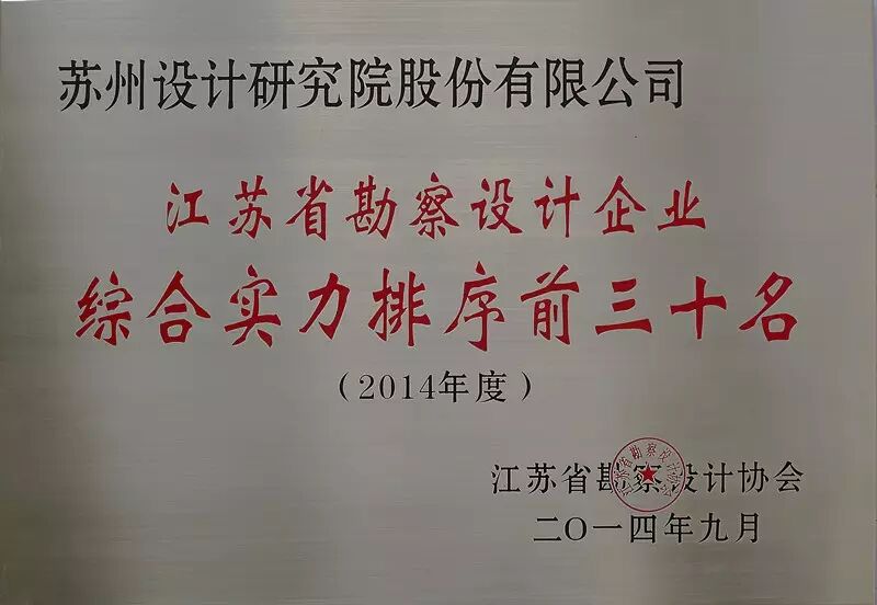我司蝉联江苏省勘察设计企业综合实力排序前三十名