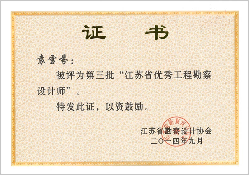 总经理助理袁雪芬获江苏省优秀工程勘察设计师