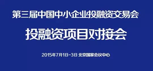 “2015年第三届中国中小企业投融资交易会-资本项目对接会” 将于2015年7月1日至3日在国家会议中心举办。本次对接活动以项目“融资路演”和“资本对接”为核心,拟邀请国内外主流投资机构以及多家银行、信托、证券等金融机构与项目融资单位代表进行面对面的对接与交流。旨在实现资金和项目的无缝合作,切实发挥金融资本对实体经济的服务作用。