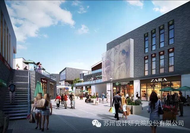 黄桥古镇现保存有东南西三片传统古街区,老城的记忆在新城的建设中得到共鸣。在“乐港码头”中,商业街的布局借鉴泰州古镇街道的形象及尺度,用现代的手法模拟旧时商业空间的尺度。整体建筑采用现代风格,在设计中做到现代与传统交融。