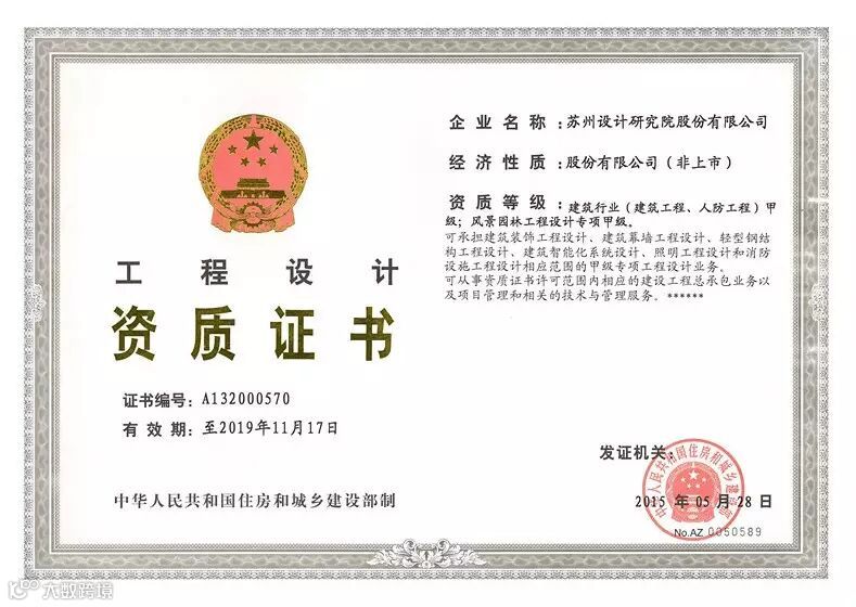 日前,苏州设计顺利通过国家住房和城乡建设部审批,获得风景园林工程设计专项甲级资质。此次风景园林设计顺利升甲,将为苏州设计大力发展景观园林设计业务、打造设计全产业链提供坚实的支撑。苏州设计已然成为拥有建筑工程甲级、人防工程甲级、风景园林甲级三项甲级资质的设计院。