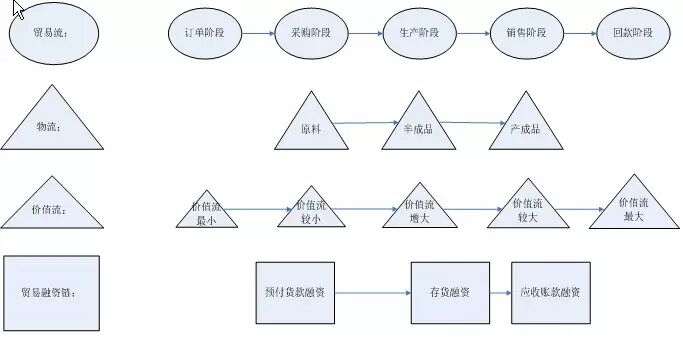 在企业贸易价值链的不同环节上,均可能存在相应的资金缺口,因而需要银行向企业提供资金或信用支持,由此便形成了与企业价值活动密切相关的商业银行贸易融资链,它具体又包括预付货款融资、存货融资以及应收账款融资等。