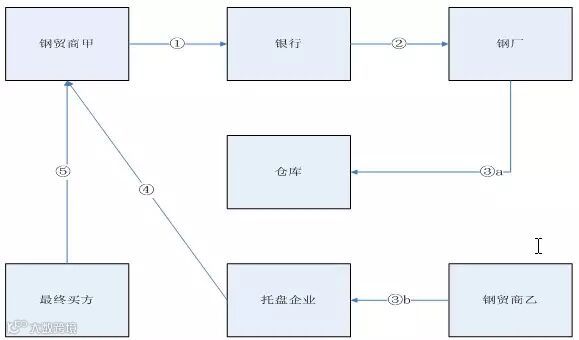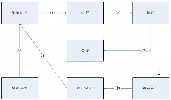 然后,根据钢贸商甲的申请,银行向钢厂出具了6个月银行承兑汇票,并指示钢厂将钢材发往指定的仓库。钢厂收到银行承兑汇票后,根据银行的指令,将钢材发往了指定的仓库。此时,钢贸商甲的关联企业钢贸商乙,以向钢贸商甲采购钢材为名,向托盘企业提出融资安排,在向其承诺于一定期限内回购该批钢材的前提下,托盘企业先行向钢贸商甲购入钢材,并由托盘企业的银行向钢贸商甲出具银行承兑汇票,同时约定采购钢材的所有权转让给托盘企业。