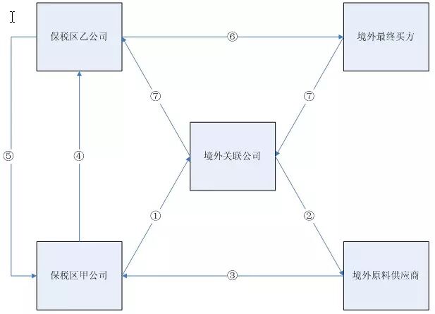 在该操作方式下,首先是保税区甲公司通过A银行开立6个月远期信用证,向境外关联公司进口原料,再由境外关联公司通过信用证融资取得融资款项,以此向境外实际原料供应商支付原料货款,待境外实际原料供应商收到原料货款后,再将原料发运至保税区甲公司,然后保税区甲公司将原料加工成半成品,并转卖给保税区乙公司进行深加工,同时就销售半产品所形成的应收账款在AA银行办理6个月应收账款融资;在收到保税区甲公司交付的货物后,保税区乙公司便向B银行申请存货项下融资以支付货款,接下来保税区乙公司对半成品进行深加工,再将产成品销售给境外关联公司,并按其指示将货物发运给境外最终买家,同时就销售产成品而形成的应收账款于BB银行办理6个月应收账款融资,境外最终买家在收到保税区乙公司发运的货物后,将货款支付给境外关联公司,境外关联公司再将此款项转汇至保税区乙公司。