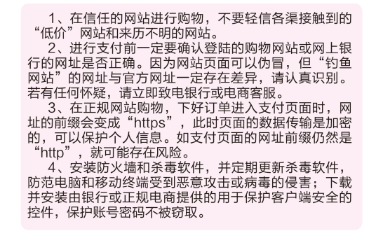 网购平台被攻击、个人信息遭泄露、信用卡盗刷是常见的套路。除了提高网购安全意识,手机支付安全同样要注意!在此,为大家贴心奉上“支付安全小常识”,一起来了解一下吧!