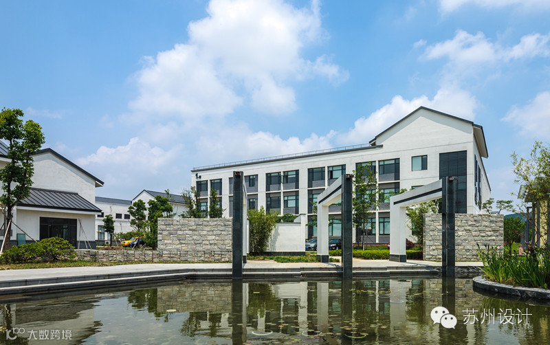 选取与周边民居粉墙黛瓦相协调的素雅色调,采用灰色铝合金屋面和白墙、木色铝合金百页等现代建筑材料,和基地环境取得视觉效果上的统一。同时也满足了建筑的耐久性要求,体现出苏式建筑清新淡雅的韵味。