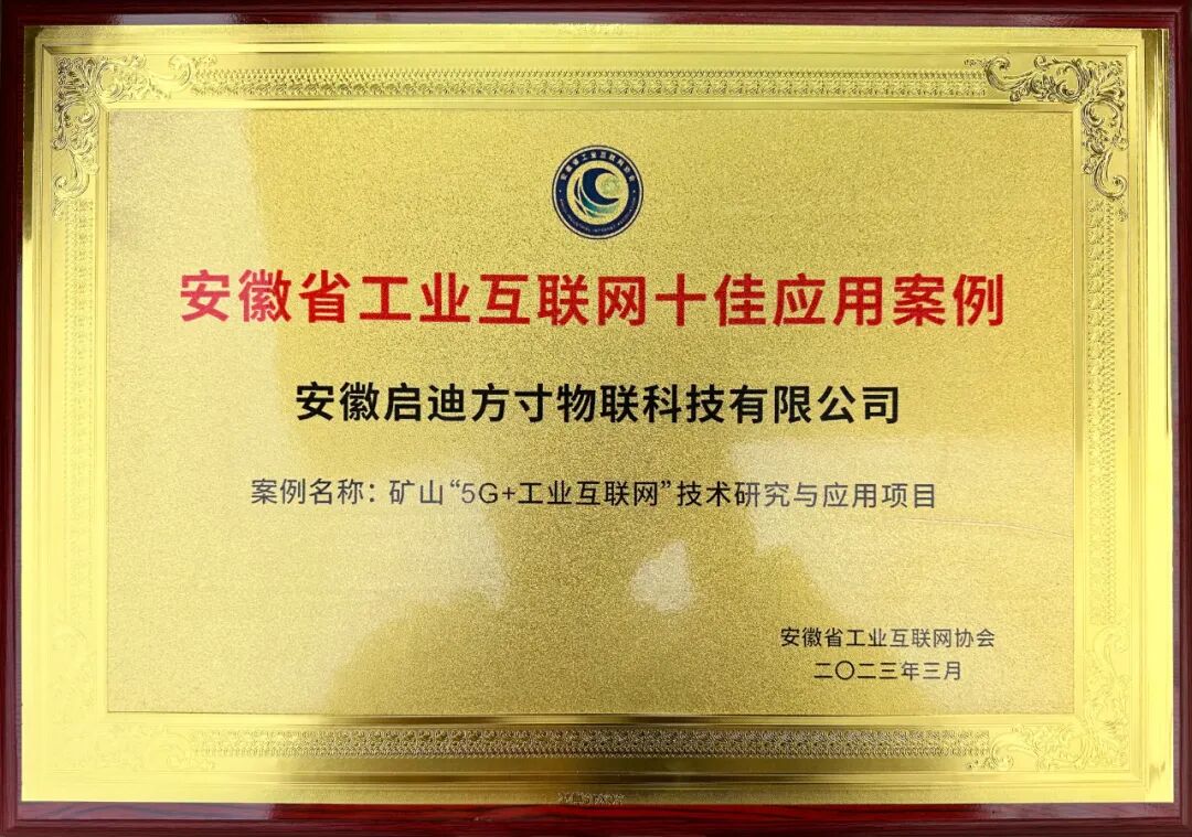 近日,安徽省工业互联网十佳应用案例发布会在合肥举行。安徽启迪方寸物联科技有限公司的《矿山“5G+工业互联网”技术研究与应用项目》获评“安徽省工业互联网十佳应用案例”。安徽省政协经济委员会主任、安徽省工业互联网协会会长牛弩韬为方寸物联董事长马翔颁发奖牌。