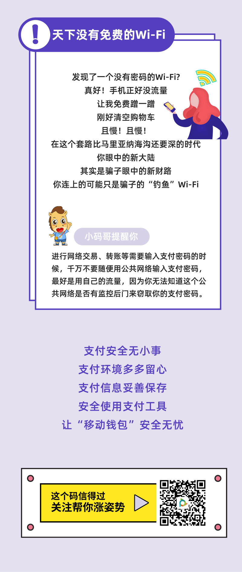 今天小码哥要给大家科普移动支付清算知识我们都知道移动支付给我们带来很多便利,在享受便利的同时我们也要小心陷阱嗷!可恶的犯罪分子抓住了疏漏之处并利用一些手段让大家掉坑今天小码哥就帮大家破坑啦下面给大家介绍三个妙招大家一定要记牢嗷