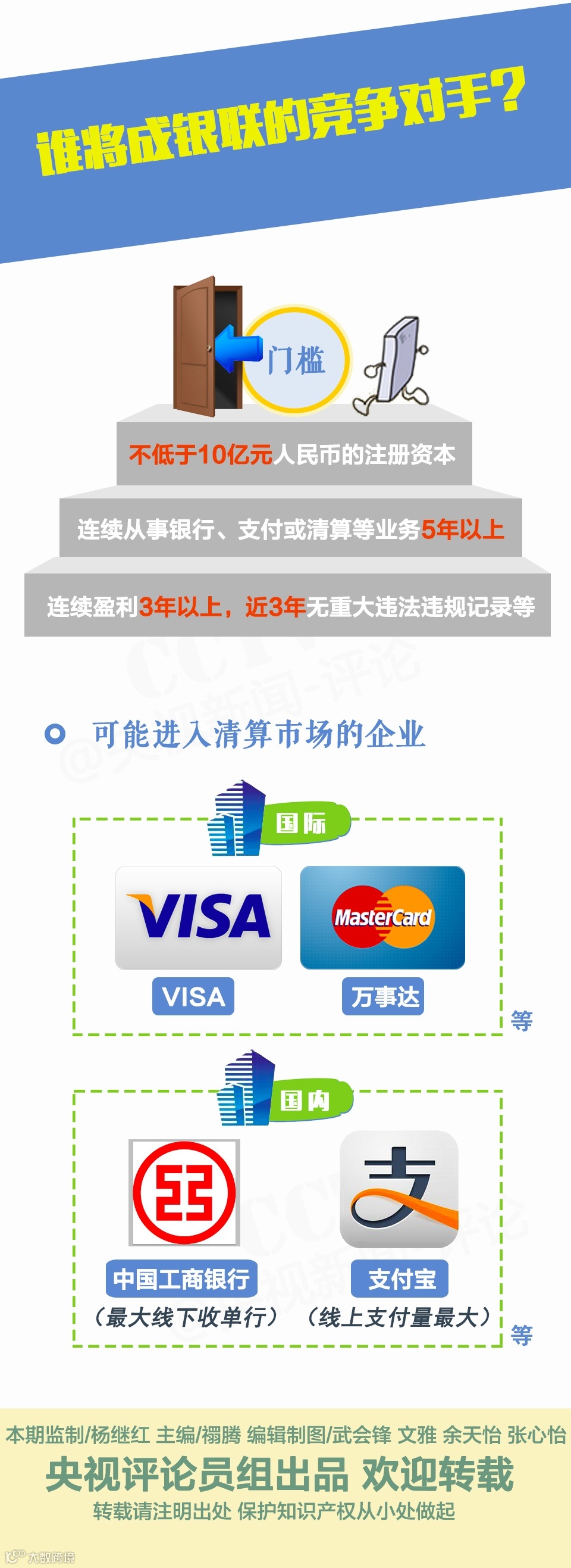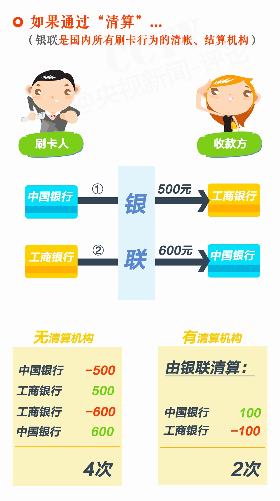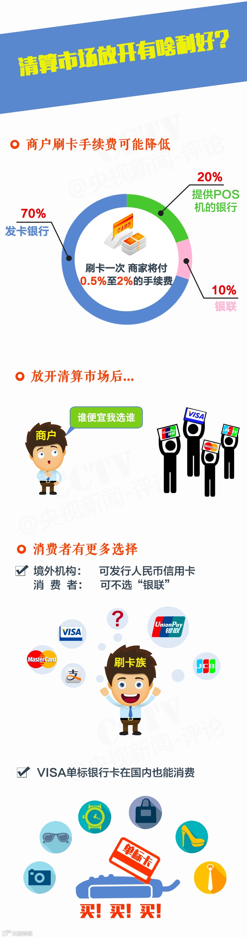 日前中国政府网发布《国务院关于实施银行卡清算机构准入管理的决定》,从2015年6月1日,符合要求的机构可申请“银行卡清算业务许可证”,在中国境内从事银行卡清算。..这意味着“银联”在中国清算市场一家独大12年的局面被打破。那么“清算”到底是什么业务?放开市场对“刷卡一族”有哪些好处?