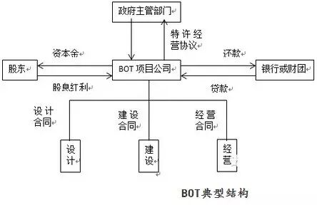 BOT(Build-Operate-Transfer),是指政府通过特许权协议,授权外商或私营商进行基础设施、自然资源开发等项目的融资、设计、建造、运营、维护,在规定的特许期内向该项目的使用者收取费用,由此回收项目的投资、经营和维护等成本,并获得合理的回报,特许期满后项目将移交给政府。