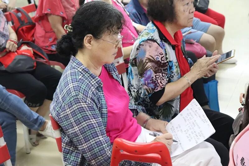 现场长者们认真倾听课程,课程结束后积极向汇聚支付志愿者们表达了自己的收获和对志愿者们的感谢,一派暖意融融。