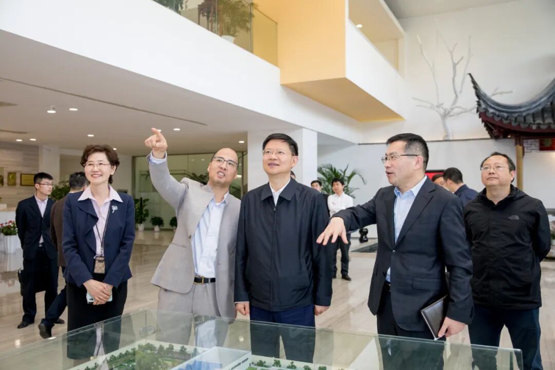 苏州市政协副主席、市工商联主席李赞,苏州市政府秘书长周伟,苏州工业园区党工委副书记、管委会主任丁立新,苏州市发改委主任凌鸣,苏州市工业和信息化局局长蔡剑峰,苏州工业园区规建委副总规划师吴昊;启迪设计集团股份有限公司执行总裁靳建华、副总裁蔡爽、副总裁张斌、副总裁胡旭明,启迪设计集团股份有限公司总工程师袁雪芬,启迪设计集团股份有限公司财务总监朱江川陪同调研。