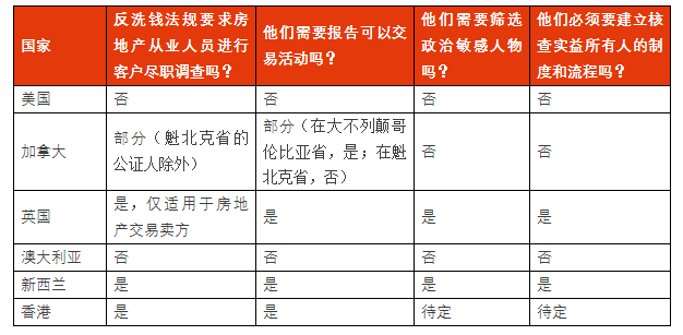 没有一个国家针对房地产行业的从业人员建立起了“合适且恰当”的测试,以评估他们是否意识到自己的反洗钱义务。