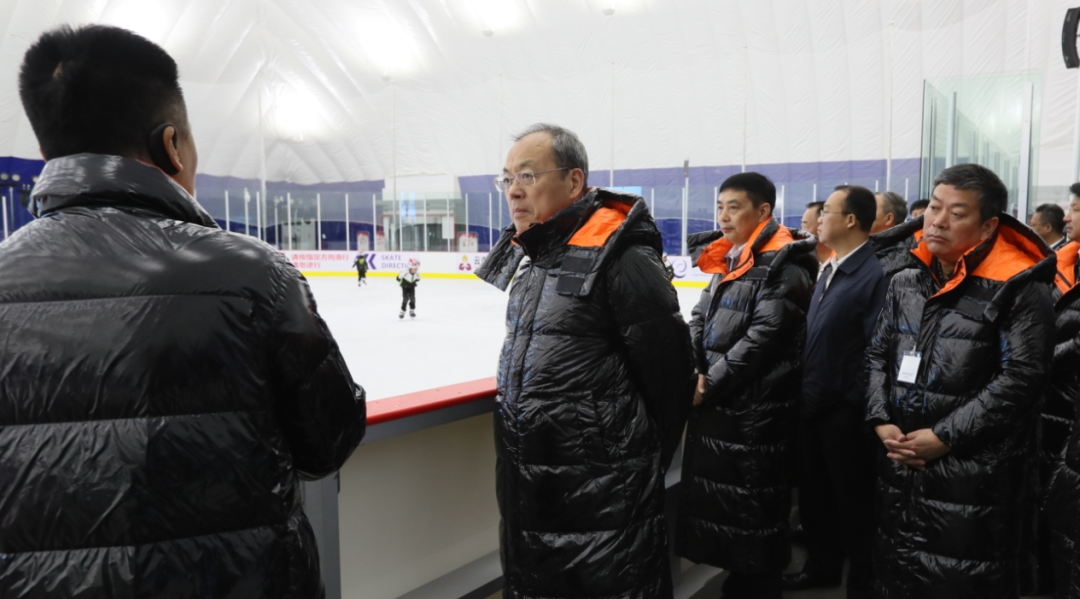 ▲ 2020年3月27日,云南省委副书记、省长阮成发率队调研腾冲启迪双创冰雪小镇,并实地察看冰上运动中心场馆基础设施建设及运营管理情况