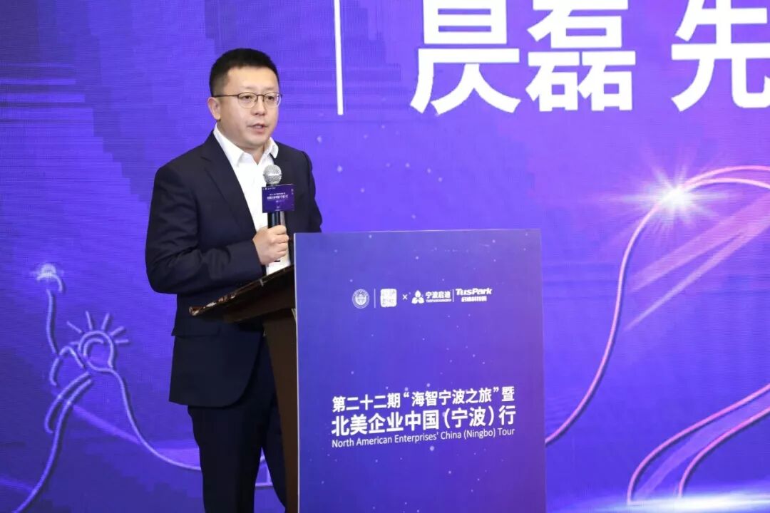 昃磊总经理在讲话中,首先介绍了启迪控股和宁波启迪的概况。启迪控股在宁波投资、建设、运营的首个科技园项目——宁波启迪科技园,以推动科技创新、促进科技成果转化、助力区域产业升级为发展使命。此次活动依托启迪控股全球创新网络,宁波启迪联动启迪之星美国安娜堡基地,围绕汽车类产业资源,邀请16家北美创新企业访问宁波并开展对接。未来,宁波启迪将继续协同宁波市科协及各相关部门全面链接启迪各海外创新平台,为进一步促进海外人才离岸创新创业,推动更多海外创新成果在宁波落地转化助力。