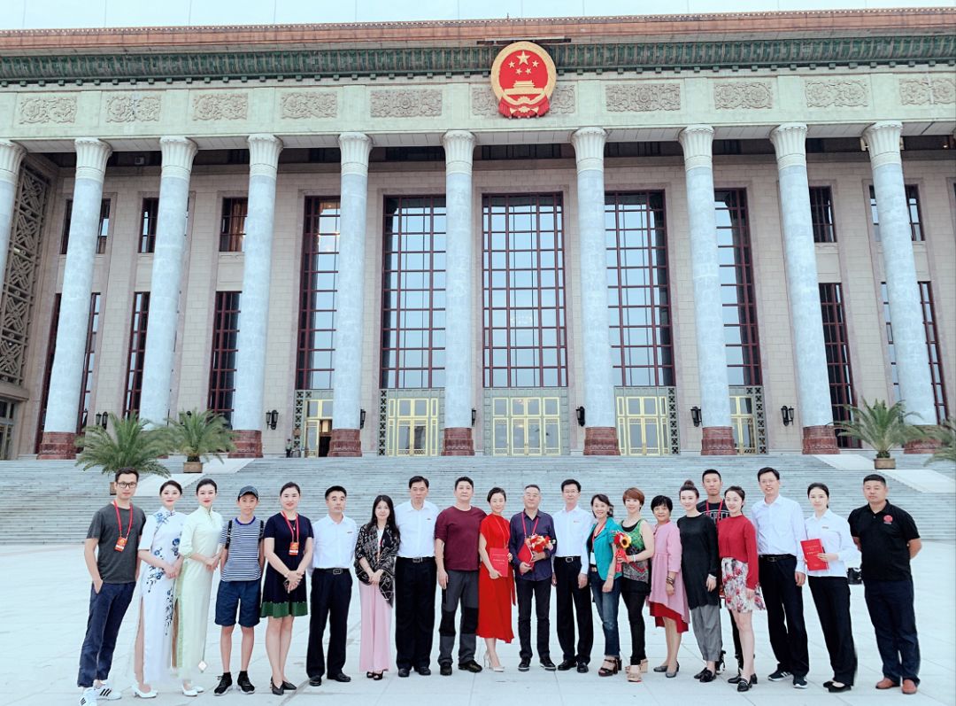 ▲剧组成员与大会堂领导合影