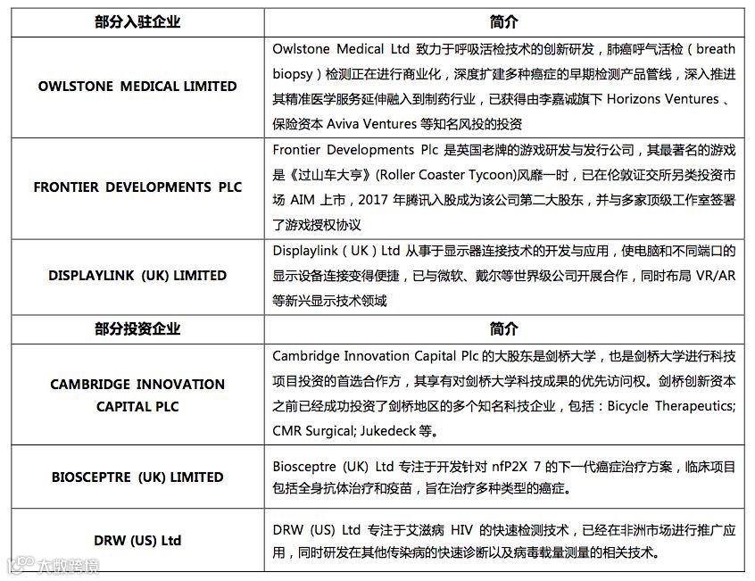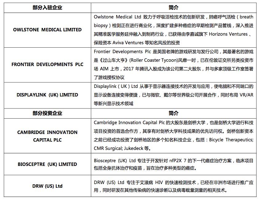 截止目前,剑桥启迪科技园已经有四处物业投入使用,并成功对剑桥当地的创新企业进行投资,部分入驻与投资企业简介如下: