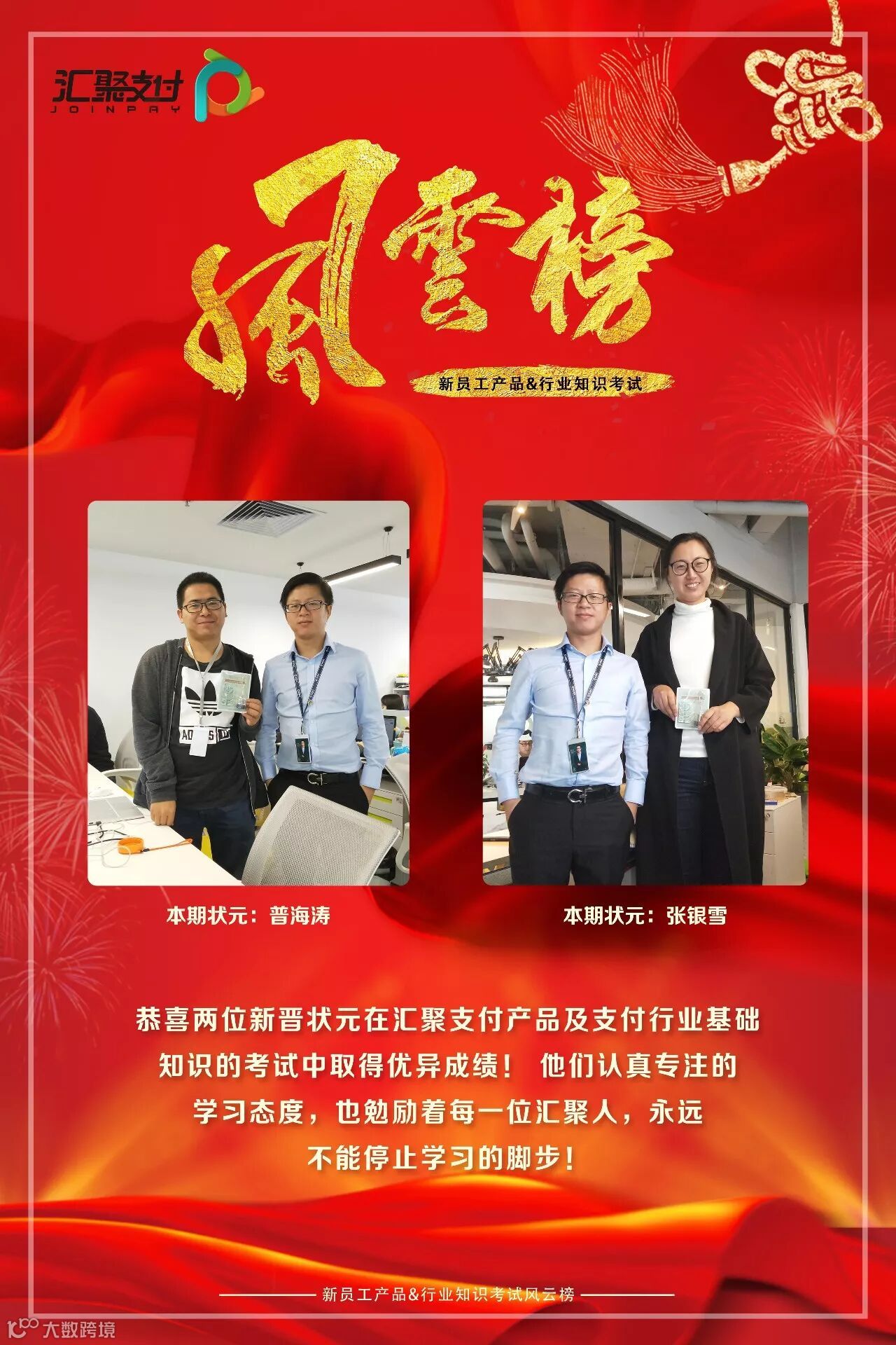 经过为期两天的产品及支付行业基础知识培训,初来乍到的10位新员工对汇聚支付及行业知识都得到了一定的提升。其中,张银雪、普海涛两位童鞋在考试中取得优异成绩,荣登本期考试的风云榜。现在,我们就马上看看,两位状元的心得分享吧!