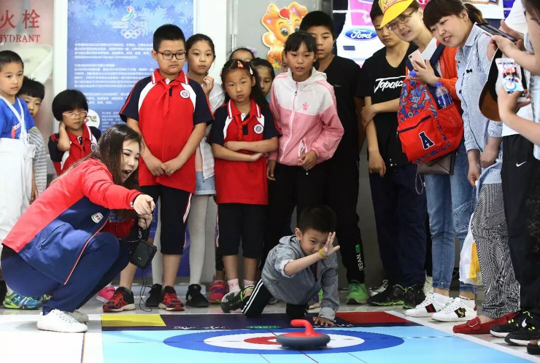 随后,孩子们来到专门的陆地冰壶区,教练为大家介绍冰壶的基本知识和简单规则。陆地冰壶是中国冰球协会推广冰壶项目的一种重要方式。孩子们围在冰壶场地两侧的出发区,轮流将冰壶投出,感受冰雪运动带给他们的快乐。