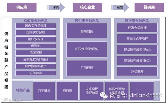 供应链金融平台包括预付类、存货类、应收类等金融产品,特色产品为跨贸易过程的金融产品。