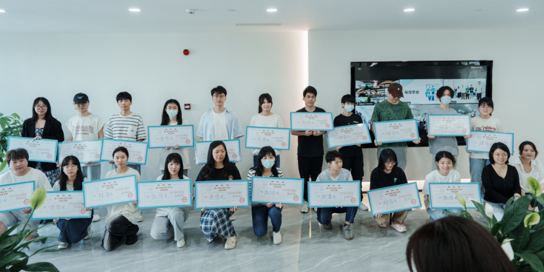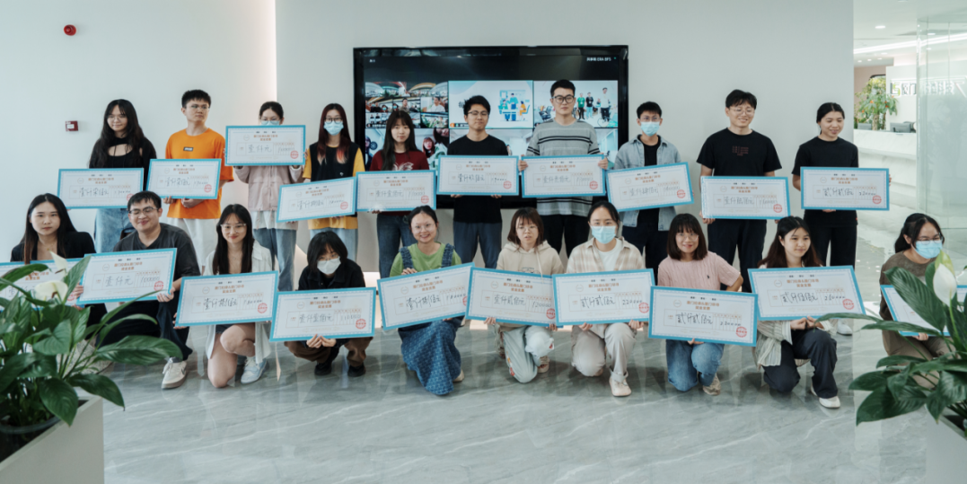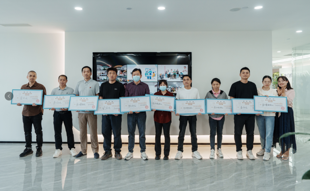 总经理陈培建先生、副总经理陈丽珍女士和企业合伙人为获奖者颁发奖金并合影留念。