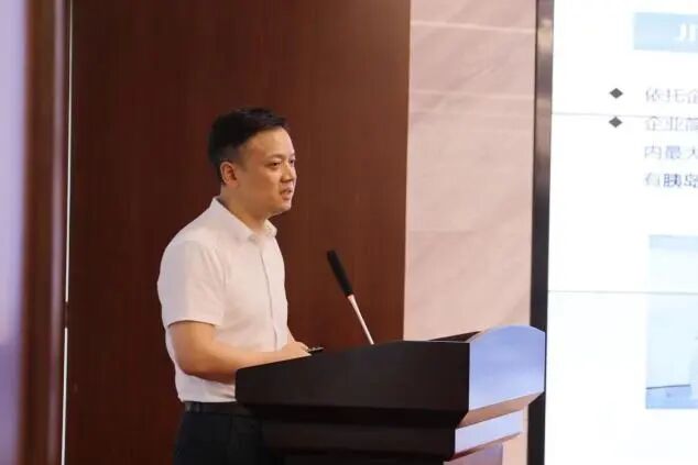 长三角国创中心主任助理郜军对国创中心组织创新的实践和经验作分享。他表示,国创中心致力于构建一个集创新资源、研发载体和产业需求于一体的创新生态,坚持以企业为主体,以市场为导向,推动重要领域关键核心技术的攻关。希望国创中心可以与东方美谷核心区企业加强交流合作,进一步实现科技创新和产业发展的深度融合。