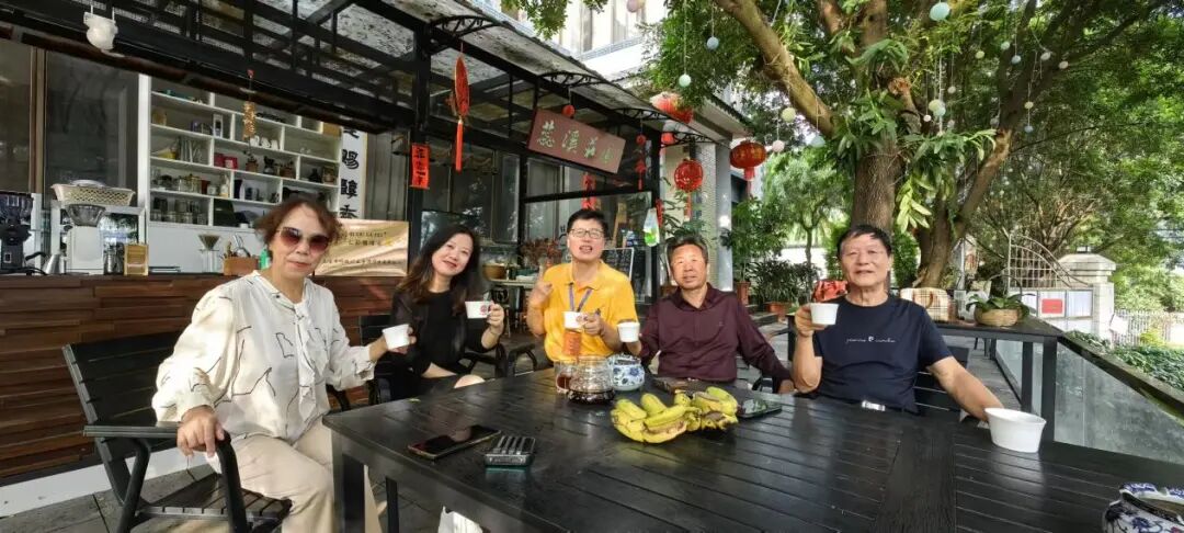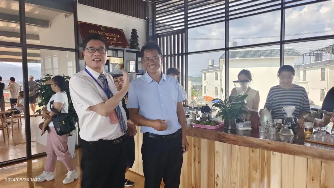 在蕊溪庄园与杨总、上科组织住云南陈专员、谢总在“七彩咖啡家”热切交流。