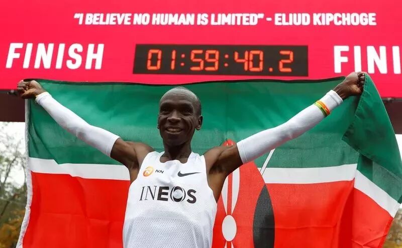 今后在谈论起人类历史上第一个马拉松跑进2小时的人时,只会有一个名字被提及——埃鲁德·基普乔格。