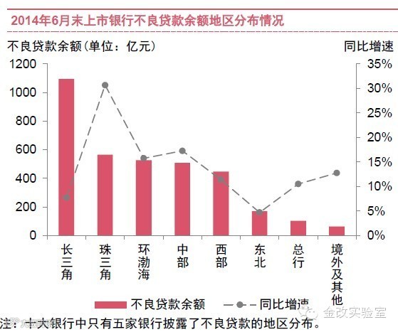 从数据来看,长三角仍然是不良贷款最为集中的地区,2014年6月末余额较2013年末增加7.71%,达1094.48亿元。这个数字比起不良额排名第二及第三的珠三角及环渤海之和还要多,可见长三角地区不良资产质量的压力。