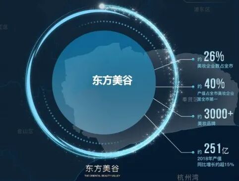 上海重点打造,政府千亿投资:3年间东方美谷已由当初的20家企业扩展到约70余家美丽健康企业,化妆品数量约已占全市的1/4,其产值占全市约40%以上,已突破约200亿产值。